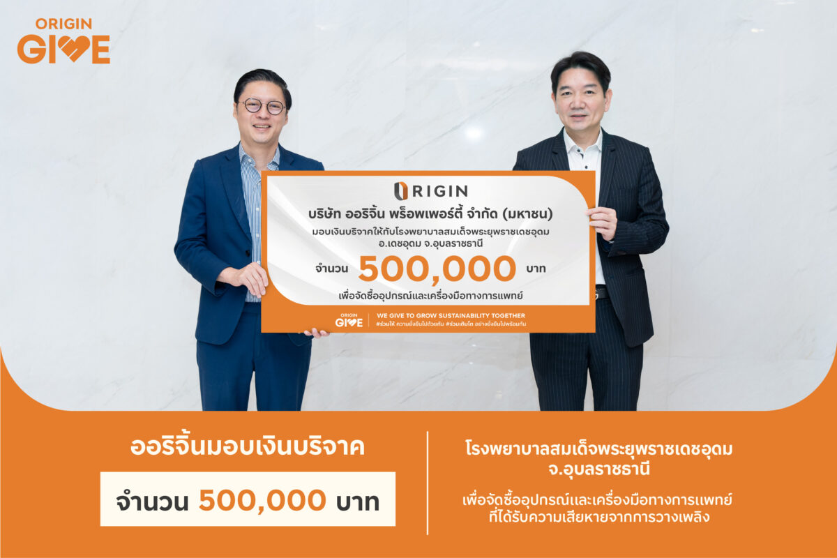 ออริจิ้นฯ มอบเงิน 500,000 บาท ให้ โรงพยาบาลสมเด็จพระยุพราชเดชอุดมร่วมสมทบทุนซื้ออุปกรณ์-เครื่องมือทางการแพทย์ที่เสียหายจากเหตุวางเพลิง