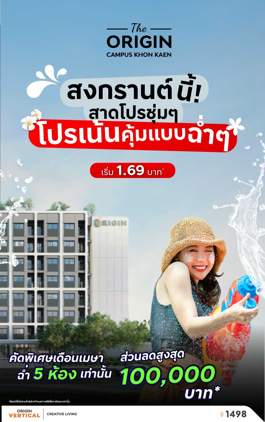 Origin Vertical มอบข้อเสนอสุดพิเศษสำหรับลูกค้าคนสำคัญอยู่เสมอ เพื่อให้คุณเป็นเจ้าของโครงการคอนโด The Origin Campus Khon kaen ได้ครบ จบและคุ้มที่สุด ในราคาเริ่มต้น 1.59 ล้านบาท พร้อมรับของแถมเพิ่มทุกยูนิต