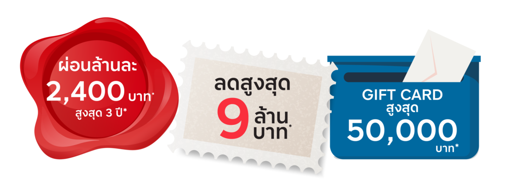 💌 ผ่อนล้านละ 2,400 บาท* สูงสุด 3 ปี*